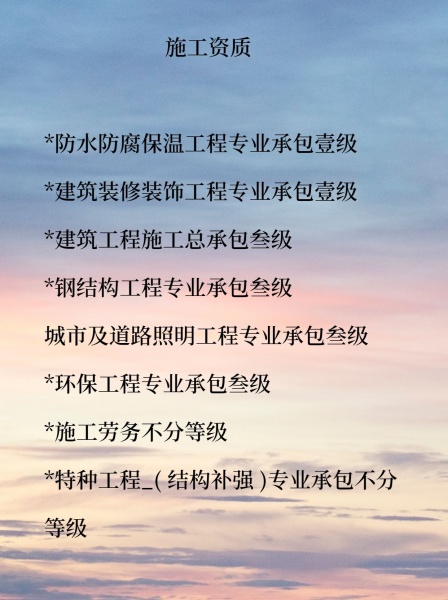公司多項一級施工資質(zhì),CA鎖齊全!招投標開票走款,人員配置齊全,業(yè)績多而廣,業(yè)務(wù)成熟,能給您精準把控,少走彎路!標書預(yù)算,資質(zhì)合作,項目施工,您需要的我們都有。優(yōu)質(zhì)的服務(wù),高效的辦公效率,歡迎合作! 聯(lián)系我時,請說是在NetWish.cn看到的,謝謝!