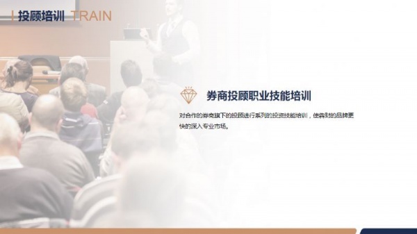 對合作的券商旗下的投顧進(jìn)行系列的投資技能培訓(xùn),使?fàn)呢數(shù)钠放聘斓纳钊雽I(yè)市場。
